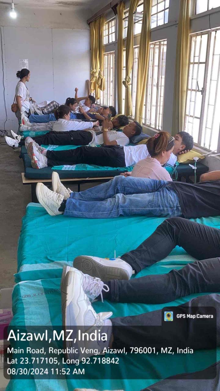 The NSS, GAC Unit, in collaboration with the GAC Red Ribbon Club and the Aizawl Civil Hospital Blood Bank organized a ‘Blood Donation Drive' on Friday, September 20, 2024, at the Mualpui Campus, Government Aizawl College. A total of 108 donors (72 male and 34 female) donated their blood on this day, taking the total unit of blood donated this semester to 405 units.