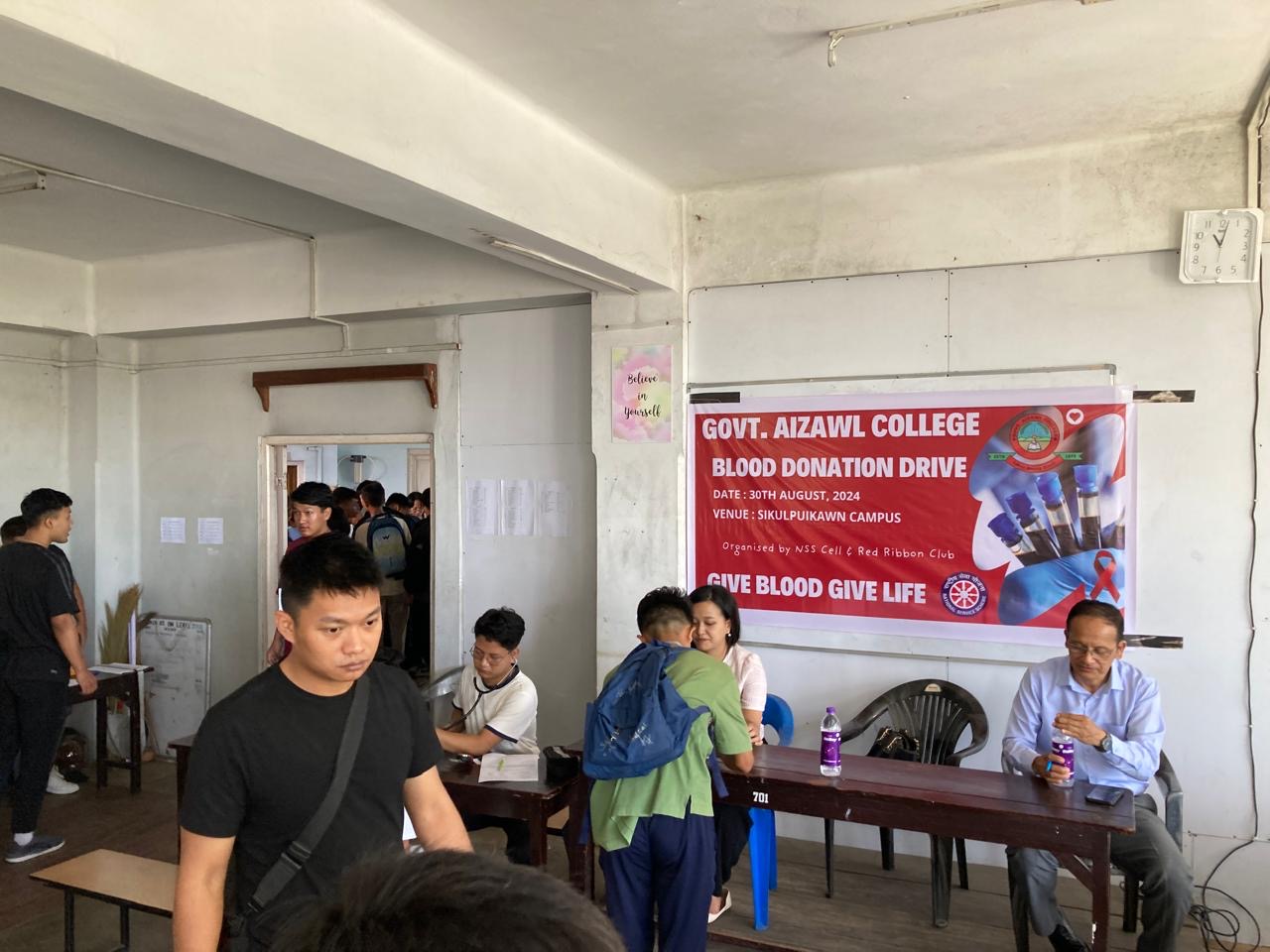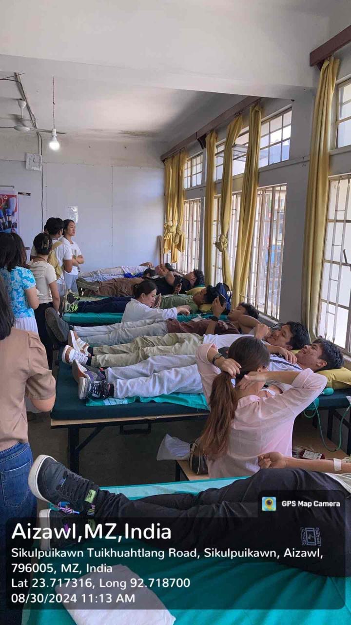 The NSS, GAC Unit, in collaboration with the GAC Red Ribbon Club and the Aizawl Civil Hospital Blood Bank organized a ‘Blood Donation Drive' on Friday, September 20, 2024, at the Mualpui Campus, Government Aizawl College. A total of 108 donors (72 male and 34 female) donated their blood on this day, taking the total unit of blood donated this semester to 405 units.
