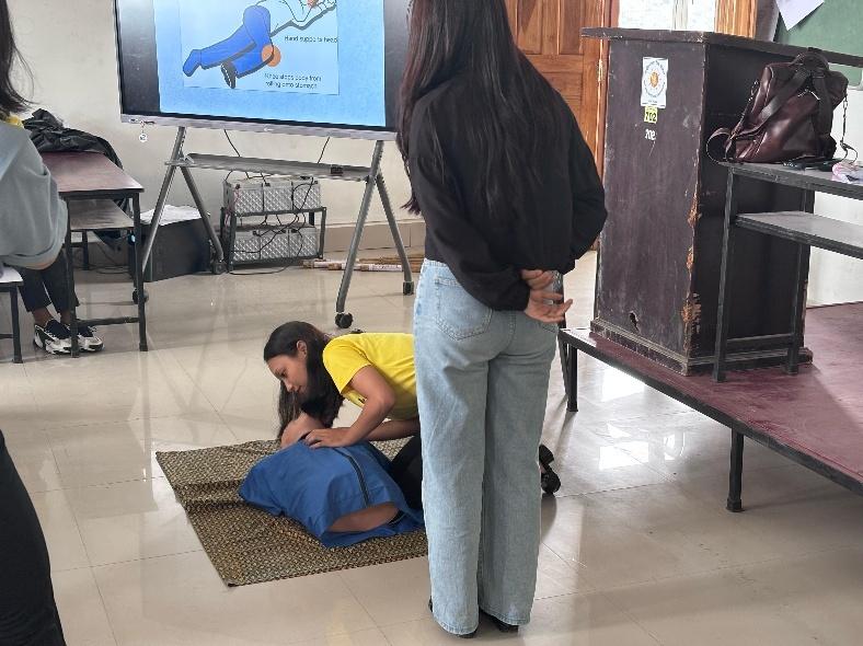 The session featured comprehensive instruction on Basic Life Support (BLS) and First Aid, led by Pi Lalmuanpuii Hnamte, Demonstrator at RIPANS Aizawl. Her training blended both theoretical knowledge and hands-on practical exercises, covering essential emergency procedures ranging from management of Epistaxis (nosebleeds) to techniques for administering Cardiopulmonary Resuscitation (CPR). This immersive learning experience equipped participants with vital life-saving competencies, fostering greater confidence and responsibility in emergency scenarios.