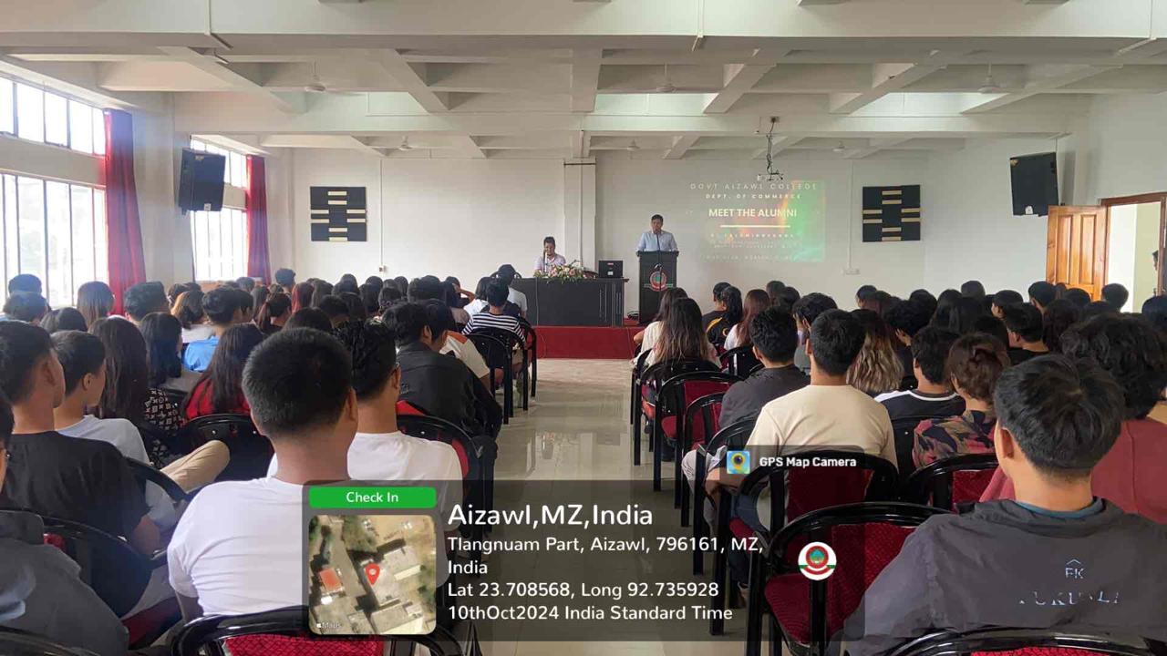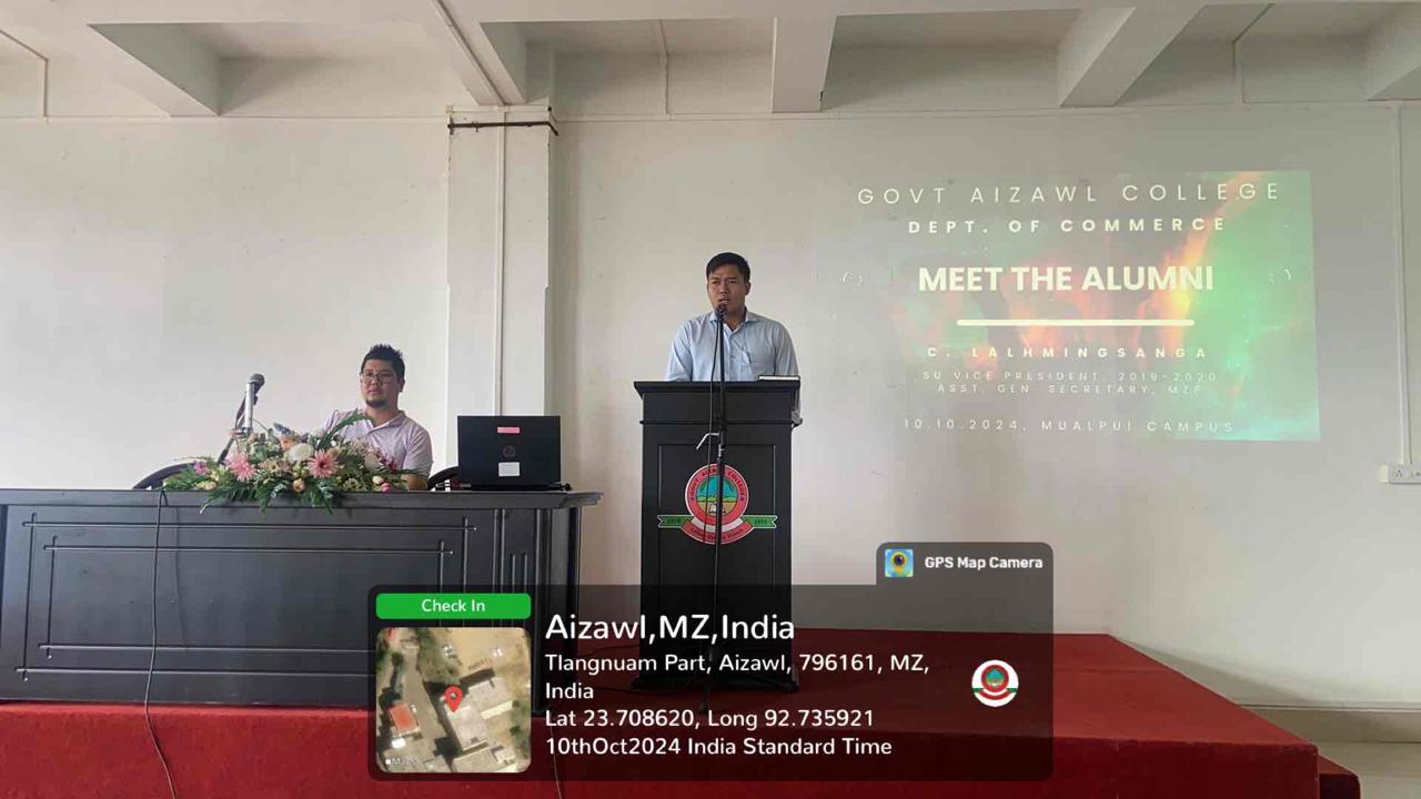 As part of Alumni Week being observed from October 7 to 11, 2024, the Department of Commerce organized a program titled "Meet the Alumni" on Thursday, October 10, 2024 at the Conference Hall, Mualpui campus. C.Lalhmingsanga, Class of 2020 and former Vice President of the Student Union 2019-2020, was invited to share his experiences in order to inspire and challenge the students. The event was attended by 6 faculty members from the Department of Commerce, as well as students from the 1st, 3rd, and 5th semesters.