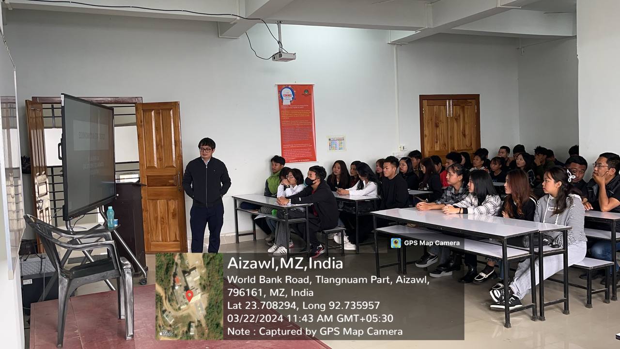 The event featured interactive sessions where students had the opportunity to ask questions, and seek guidance from the alumnus on career opportunities, skill development, and industry trends. The programme concluded with a vote of thanks from Dr. Rosie Lalmuanpuii, followed by a networking session, where faculty, students and alumni mingled and shared experiences in an informal setting. The event was a success; fostering a deeper connection between alumni and the college community, while motivating students to strive for excellence in their future endeavours.