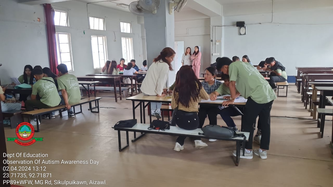 The Department of Education conducted a workshop on ‘Understanding Autism’ in observation of World Autism Awareness Day on 2nd April, 2024 at Conference Hall, Sikulpuikawn campus. The programme consisted of group presentations on topics related to autism. Students were divided into 8 groups from both PG and 6th Semester UG classes. Each group prepared and presented a poster related to their respective topics. They were judged based on their performances and prizes were distributed to the best group and best poster. Altogether there were 50 students and 4 faculty from the department.