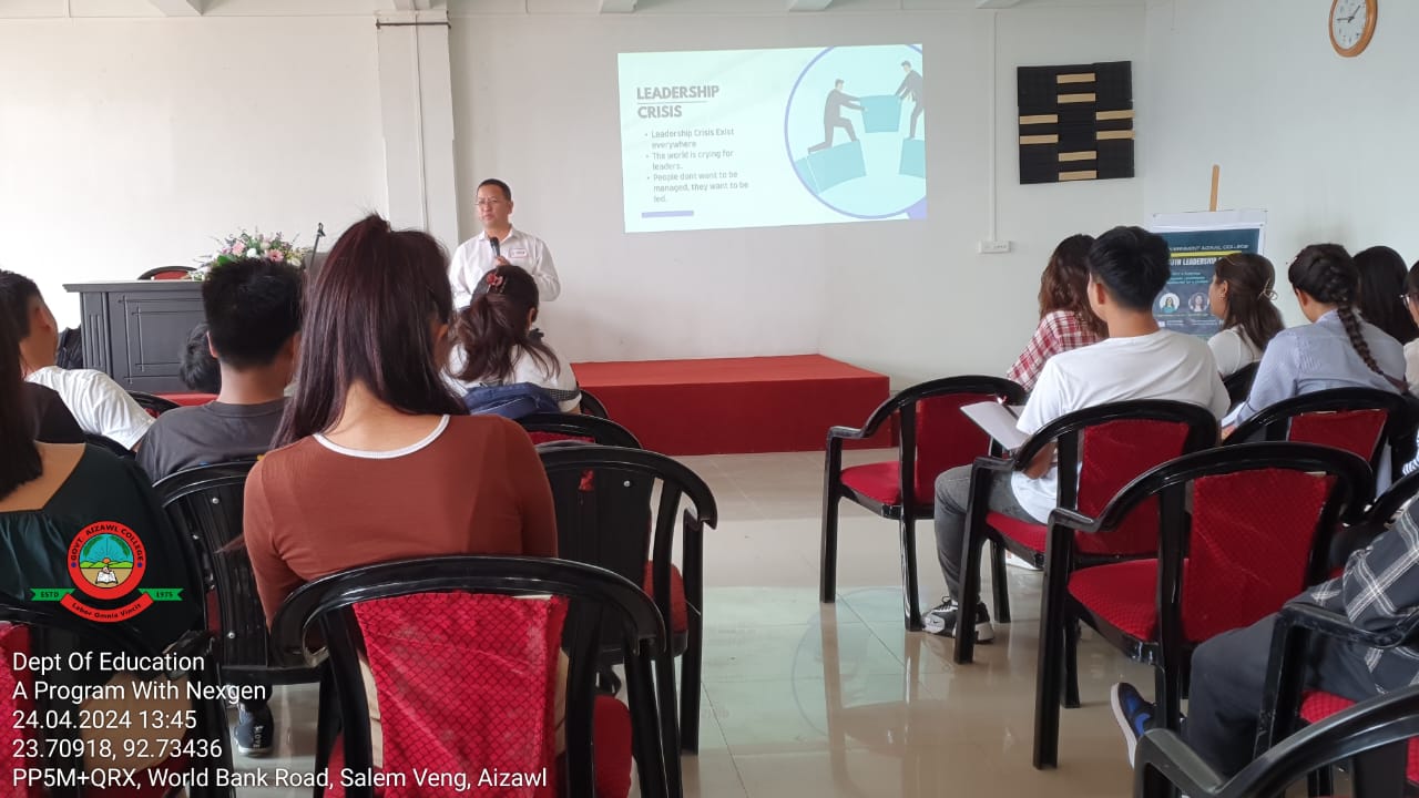 The department of Education, Govt. Aizawl College, in collaboration with NexGen Mizoram, organised a seminar on Youth Leadership on the 24th April 2024 at the Conference Hall, Mualpui campus. The topics discussed were Identity and Purpose, Visionary Leadership and Character of a Leader. Besides the resource persons namely, Dr Lalmalsawmi Hmar, Dr Vanlalsiama and Mrs Juliet CK Lian, two members from NexGen attended the event.