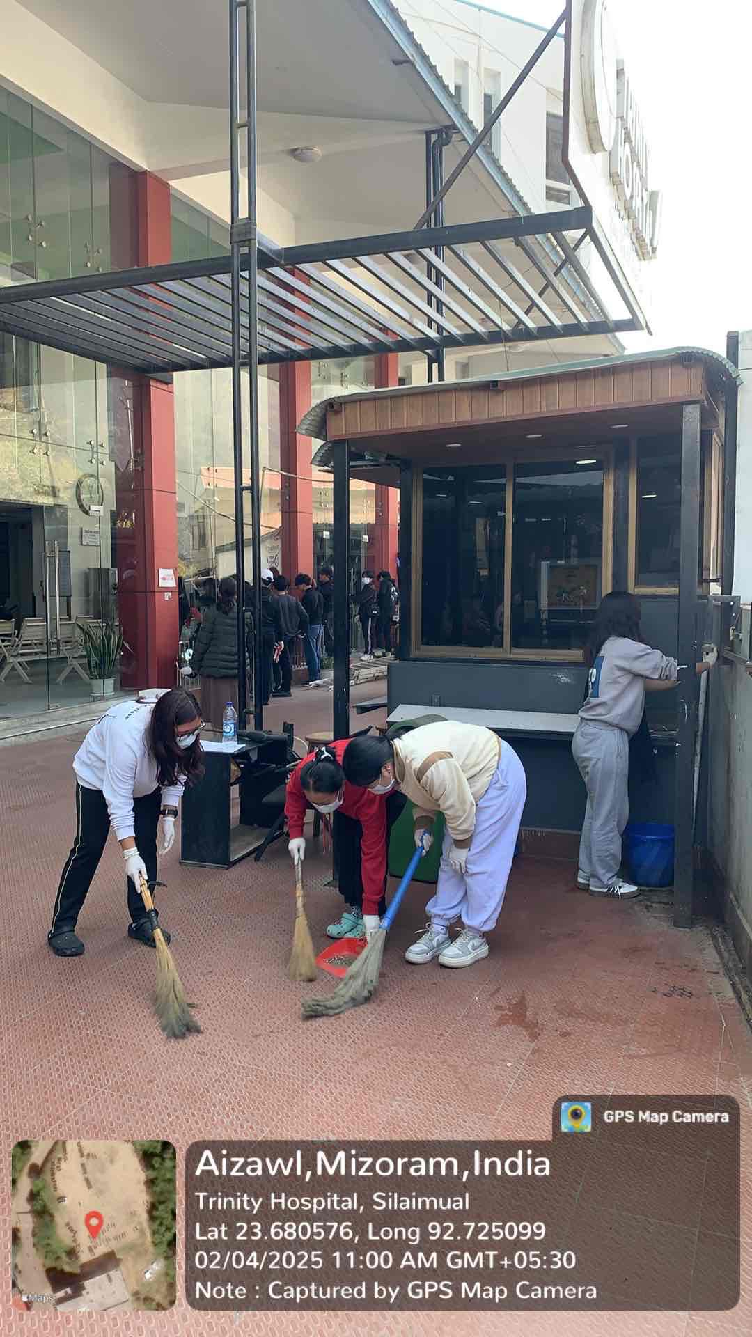 On February 4, 2025 (Tuesday), the Department of History (6th & 4th Semester) in collaboration with 7 members of the Youth Adventure Club organized an Outreach cum Social Work Programme at Trinity Hospital, Silaimual, Aizawl. A total of 92 students and 5 faculty members participated in a cleanliness drive in and around the hospital premises. The programme was carried out as part of the Golden Jubilee celebration programme.