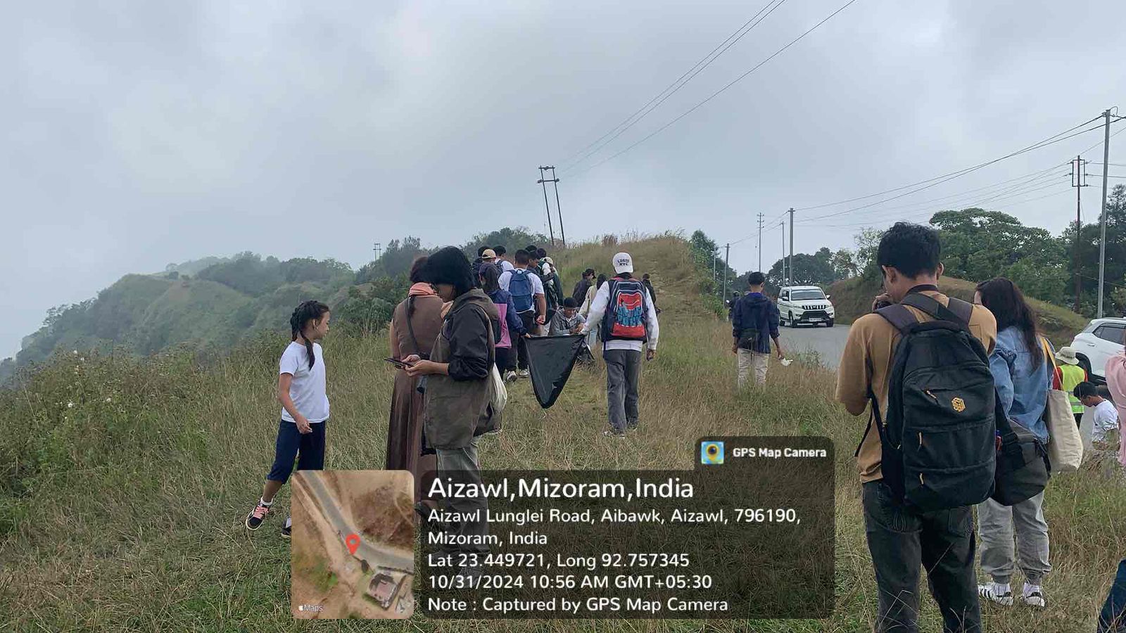 On October 31, 2024, 35 students from V Semester of the Department of History went to Hmuifang, the adopted village for social work. They were accompanied by 5 faculty members. The students cleaned up trash along the main road and off-road. The trip instilled a sense of responsibility towards the adopted village. The students also trekked up to Hmuifang Tlang.