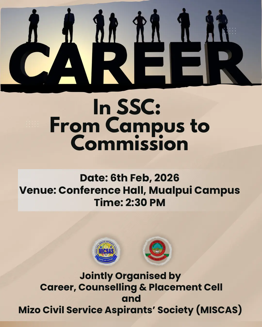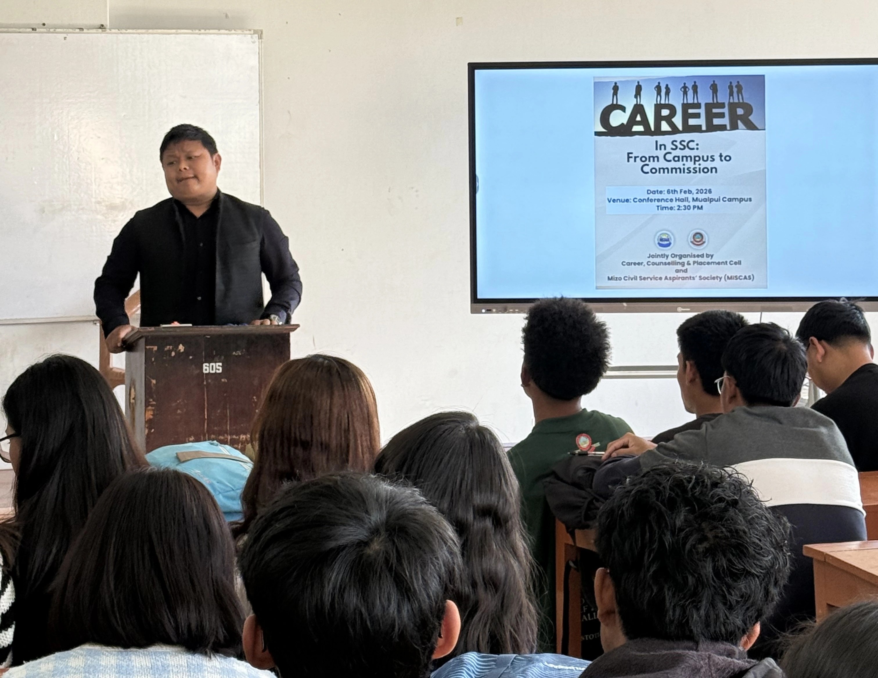An awareness programme entitled ‘Career in SSC: From Campus to Commission’ was jointly organized by the Career, Counselling and Placement Cell, Government Aizawl College and the Mizo Civil Service Aspirants’ Society on February 6, 2026, at 2:30 PM in Room 103, Mualpui Campus. The event was attended by Semester VI students from the Mizo, Political Science and Economics departments.