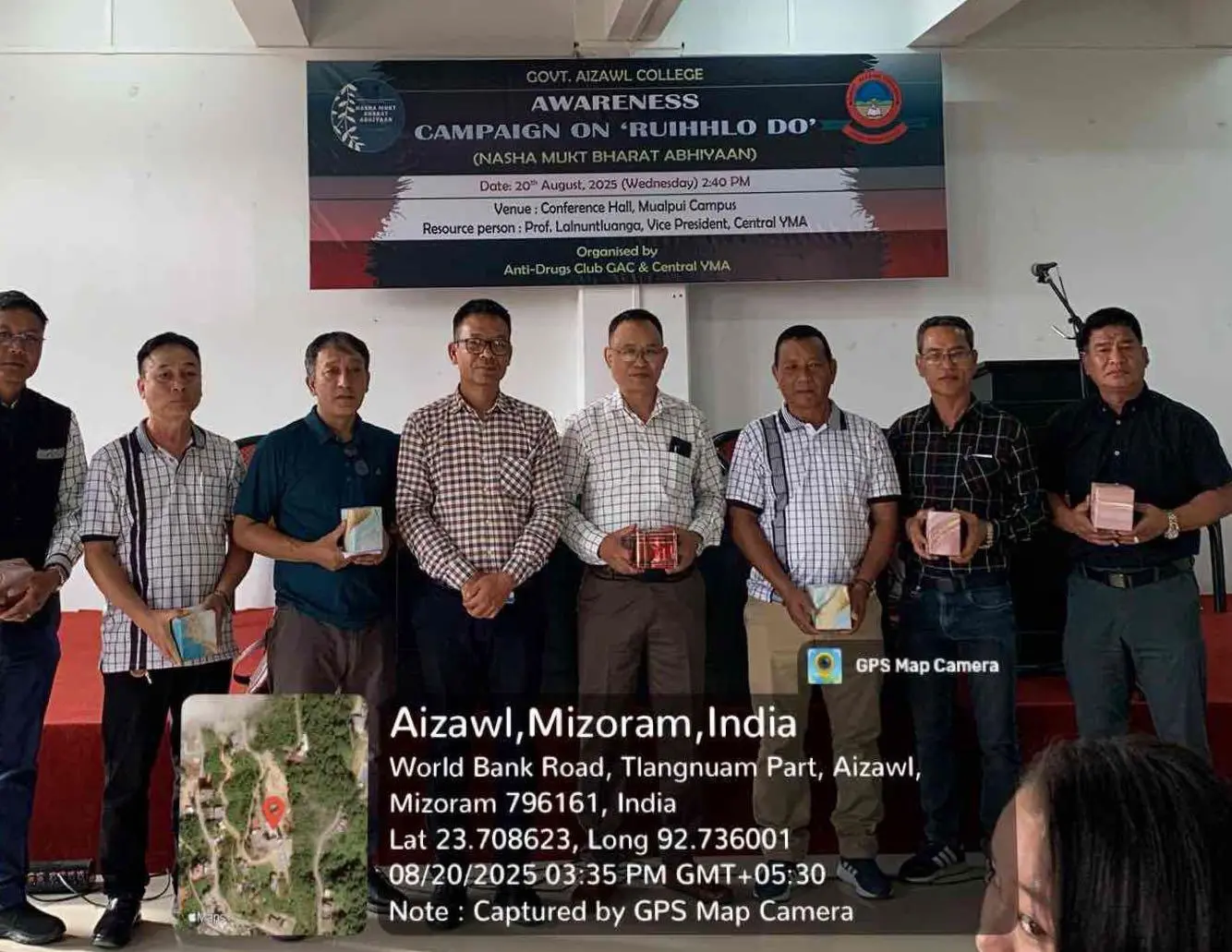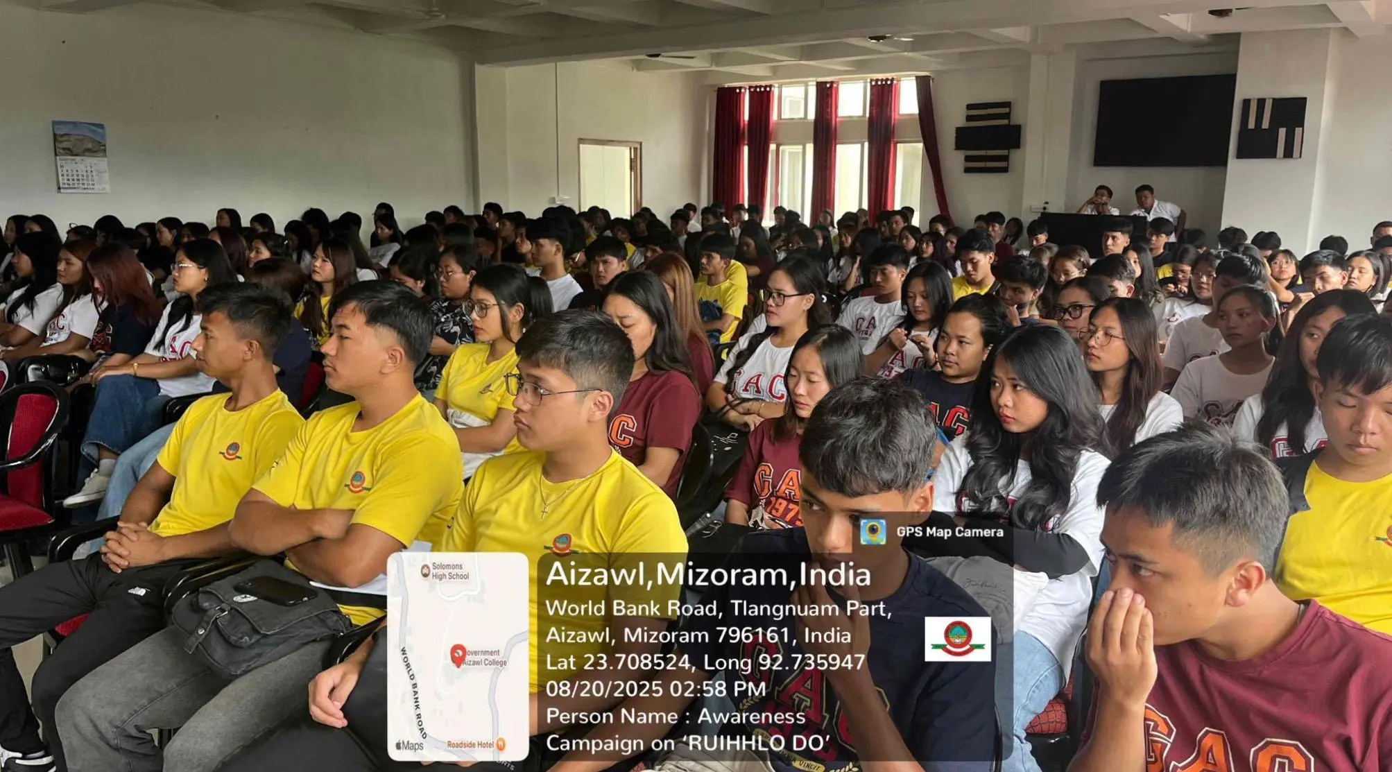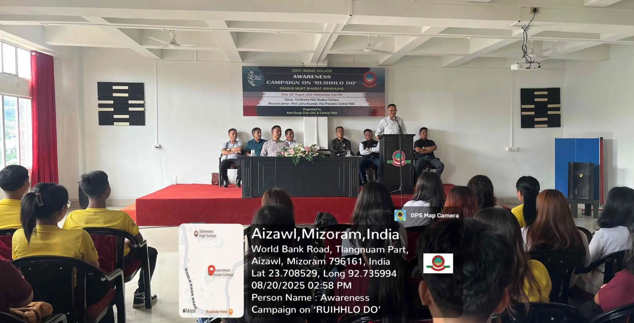 On August 20,2025 the Anti-Drugs Club in collaboration with the Central YMA Headquarters observed “Awareness Campaign on Ruihhlo Do” at the Conference Hall, Mualpui campus.